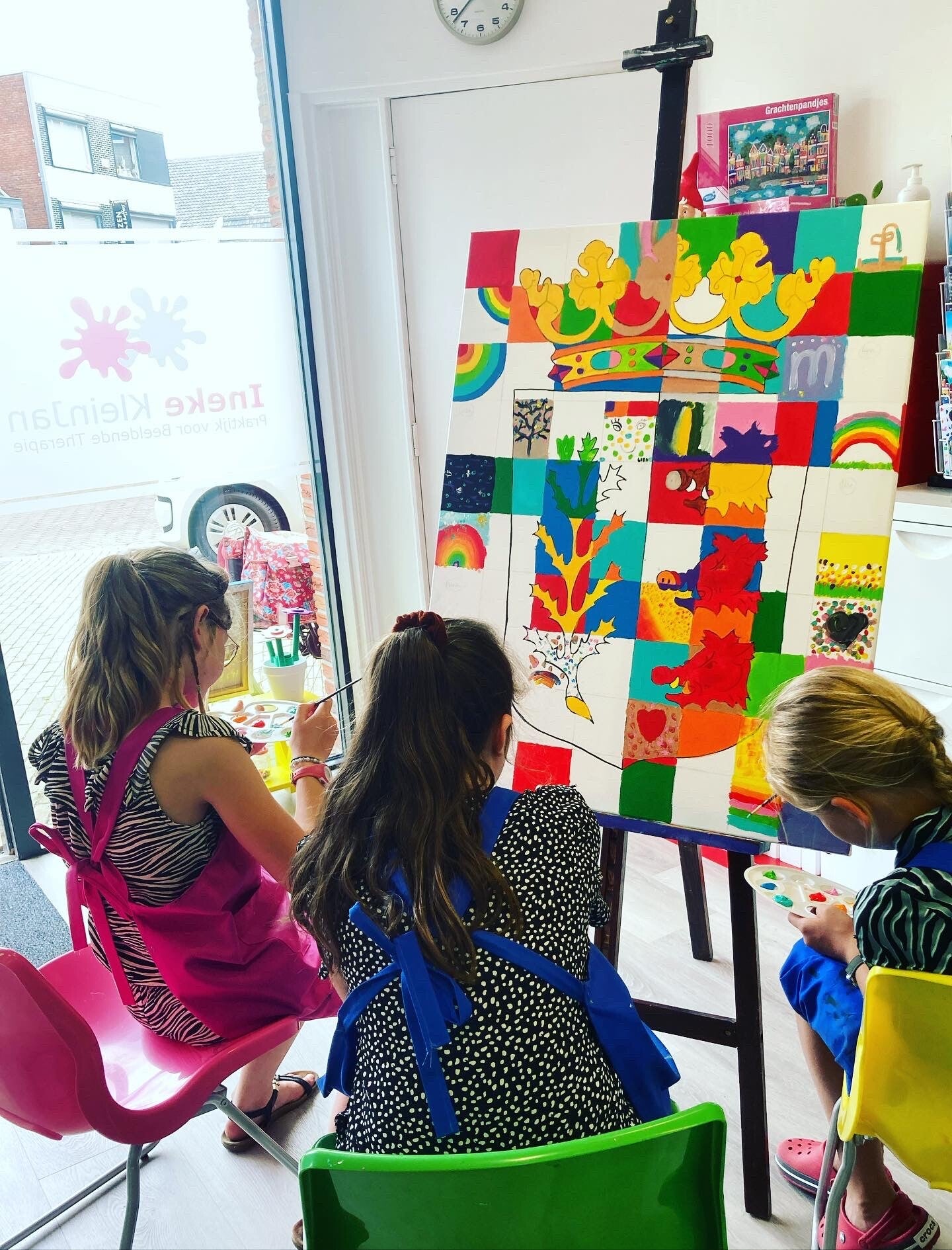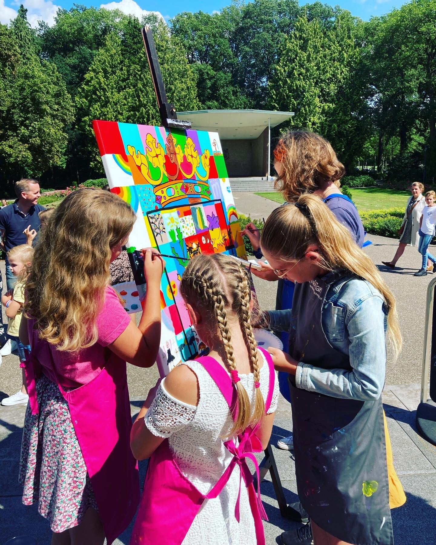 Voor de kinderen was dit een bijzondere ervaring om mee te maken. Samen wekenlang werken aan een gezamenlijk schilderij, het live schilderen tijdens het feest op 1 juli met daarna de overhandging aan de burgemeester op het podium in de grote zaal van het parkgebouw.